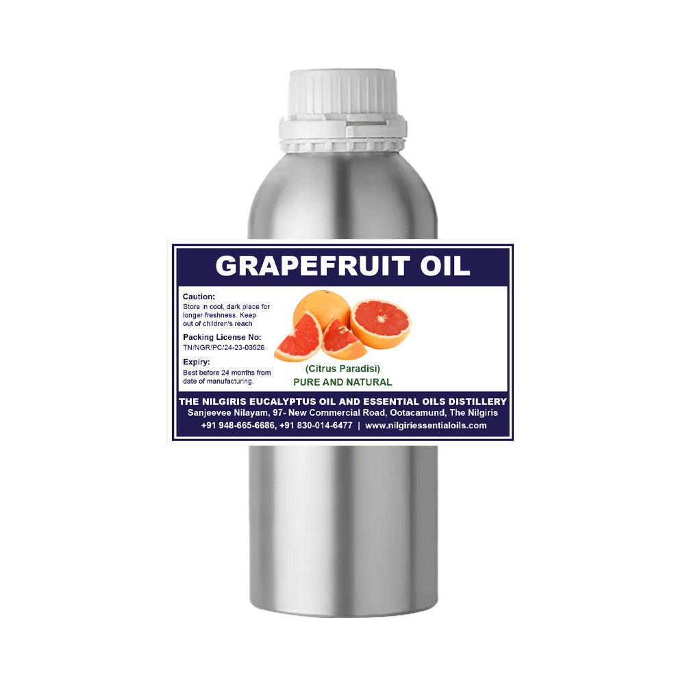 Grapefruit oil is extracted from the peel of the grapefruit (Citrus paradisi) through a process of cold pressing. It has a fresh, citrusy aroma with sweet and tangy undertones. Grapefruit oil is rich in antioxidants, vitamins, and phytochemicals, making it a popular choice in aromatherapy and skincare.